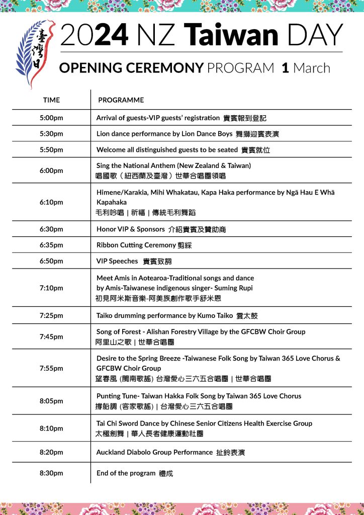 NEW ZEALAND TAIWAN DAY 2024